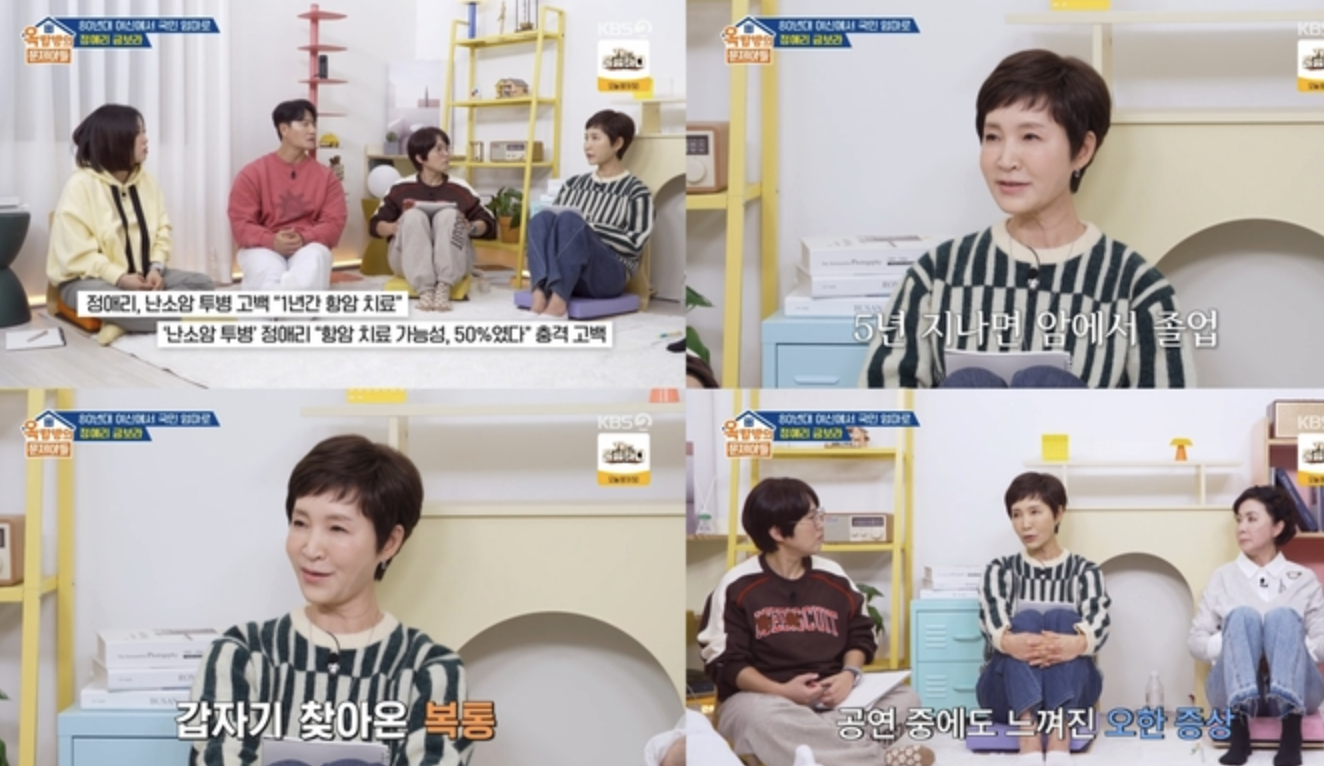 [종합] 정애리 “복막염 수술 후 난소암 판정…현재는 완치” (‘옥문아’)
